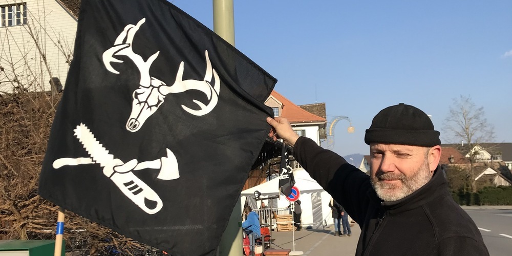 «Jetzt reicht’s!» Leonardo Benazzi vom Komitee DepoNie war derart verärgert, dass er sofort ein Zeichen setzen wollte, seinen Garten, der gleich neben der Veranstaltungsort der Grüninger Fasnacht liegt, mit DepoNie-Plakaten und DepoNie-Rebels-Fahnen schmückte und Fasnächtler:innen und andere Besuchende zum Umtrunk in seinen Garten einlud.