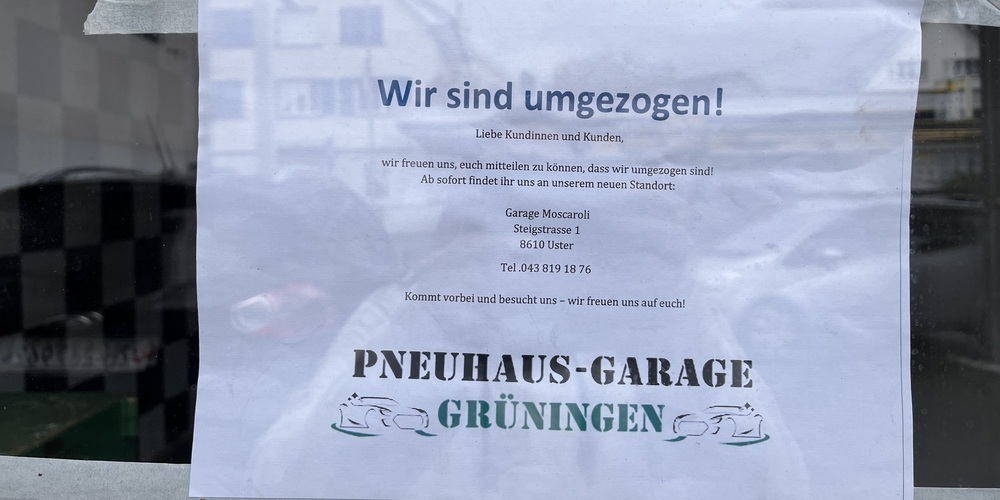 Nur ein Zettel hängt an der Tür, wo drauf steht: «Wir sind umgezogen – neu findet ihr uns an unserem neuen Standort in Uster». Einige Kundinnen und Kunden wollten noch ihre Winterpneus aufziehen lassen und standen erstaunt vor dem leeren Garagen-Gebäude gegenüber vom Volg in Grüningen. Doch eigentlich ist Inhaber Salvatore Schiappa schon am 1. Oktober ausgezogen und hat seine Garage mittlerweile ganz nach Uster verlegt.