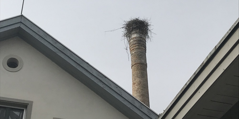 Auch das aus dem Winterquartier zurückgekehrte Bubiker Storchenpaar versuchte verzweifelt, auf dem Hochkamin an der Sennweidstrasse 1a ein neues Nest zu bauen. Weil der Liegenschaftsbesitzer dies verhindern wollte, was er mit Verschmutzung und Einsturzgefahr begründete, hatte er noch ausserhalb der Brutzeit einen «Metallhut» auf den Kamin gesetzt, um den Nestbau zu vereiteln.