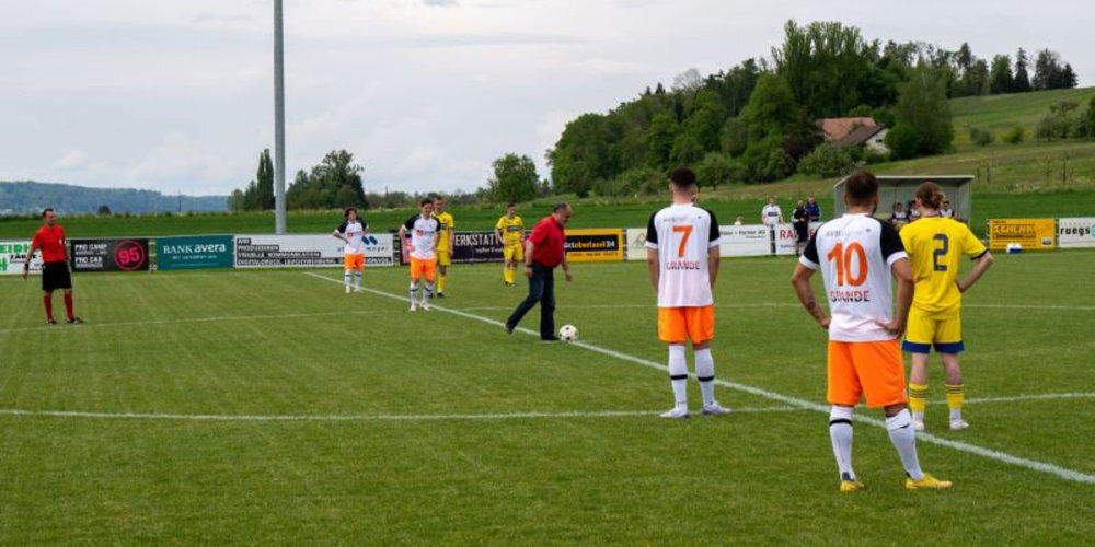 Nach dem Einlaufen der beiden Teams – dem speziellen Anlass entsprechend mit Kindern aus der Ballschule und E-Junioren – führte Gemeinderat Salvatore Giorgiano, Ressortvorsteher Sicherheit, öffentlicher Verkehr und Abfall, den Kick-off aus und gab das Spiel frei.