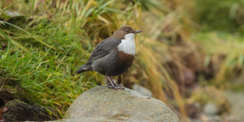 Die Wasseramsel ist perfekt an ihr nasses Umfeld angepasst. Ihr Federkleid ist so dicht und wasserabweisend, dass sie selbst bei ständiger Nässe warm und trocken bleibt. Mit ihrem klaren, lauten Gesang setzt sie auch bei starker Strömung oder plätschernden Wasserfällen ein eindrucksvolles Zeichen.