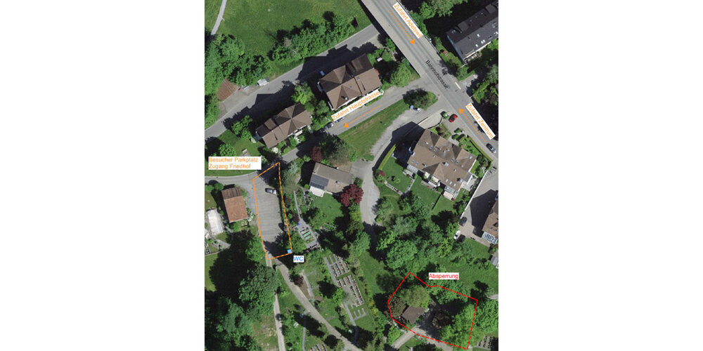 Der Baustellenbereich ab der Friedhofstrasse wird gesichert und für den öffentlichen Zugang abgesperrt. Während der Bauzeit ist der Friedhof-Zugang und das Parkieren ab der Mühlerainstrasse jederzeit möglich. Als Ersatz-WC werde eine Kompotoi-Toilette auf dem Parkplatz aufgestellt.