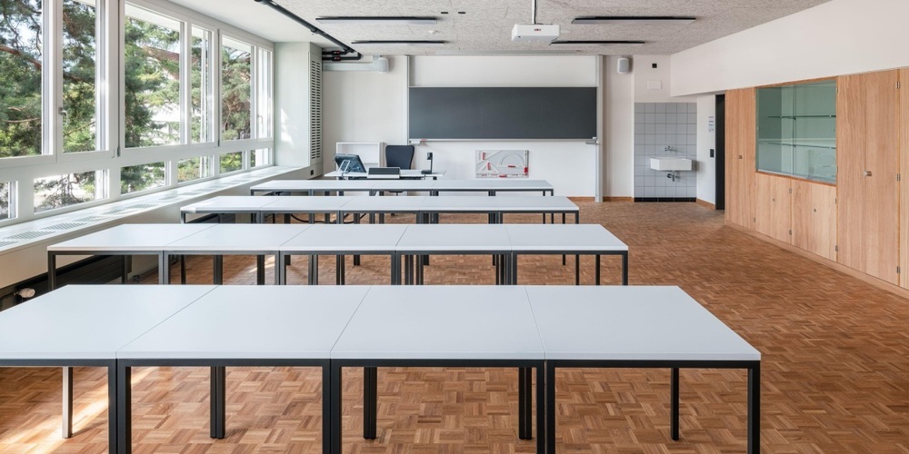 Rund 30 geladene Gäste – darunter Vertreterinnen und Vertreter von Kanton, Schule, Planung und Ausführung – nahmen an der Eröffnungsfeier teil. Nach den Ansprachen von Regierungsrätin und Bildungsdirektorin Silvia Steiner, Kantonsbaumeister Beat Pahud, Rektor Marco Fonti und Architekt Andreas Galli folgte ein Apéro im neuen Eingangsbereich. Anschliessend führten die Architekten durch die sanierten Gebäude und gaben Einblicke in Planung, Materialwahl und technische Besonderheiten.