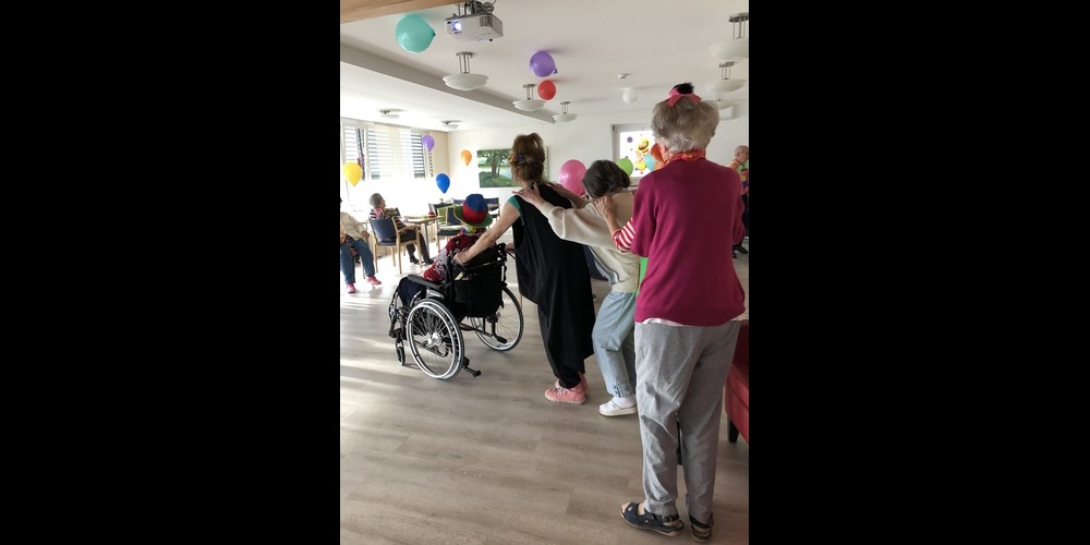Die Veranstaltungen finden unter Einhaltung der zahlreichen Auflagen statt und werden von den Bewohnerinnen und Bewohnern sehr genossen. Die Clowns der Stiftung Lebensfreude beispielsweise sind jedes Jahr zweimal eingeladen, die Bewohnenden im Grüneck zu unterhalten. Es ist für viele immer eine schöne Abwechslung mit Spässen und musikalischen Überraschungen. Neben unseren eigenen Tieren, den Hauskatzen und den Ziegen, kommen Zwerghühner und Meerschweinchen für die Aktivierung der Sinne zu Besuch und lassen sich füttern und streicheln.